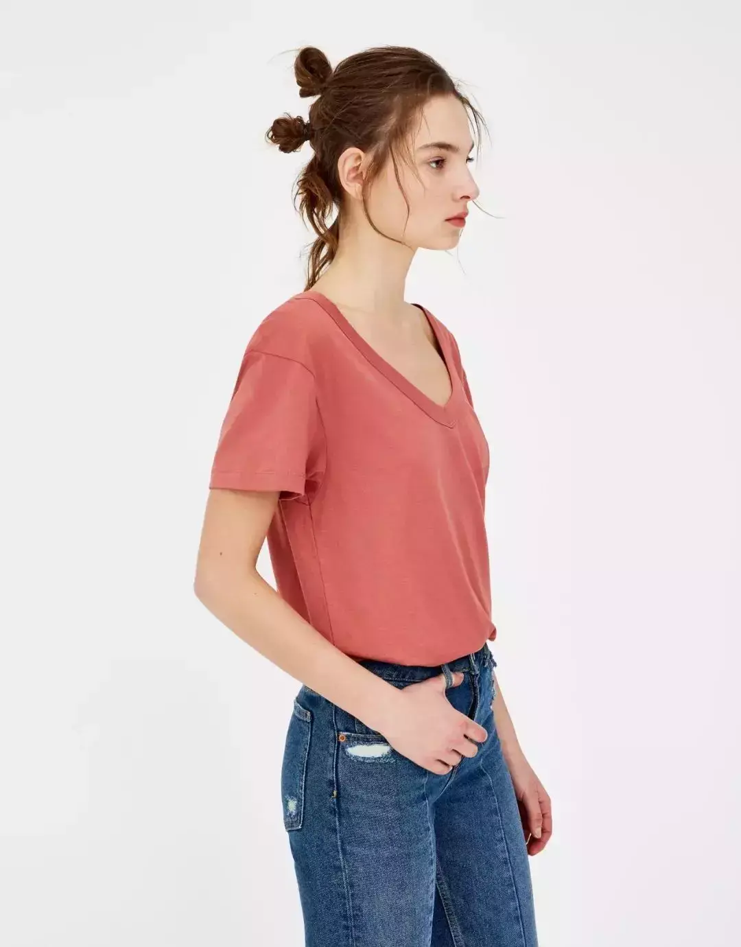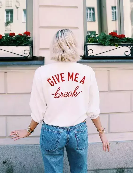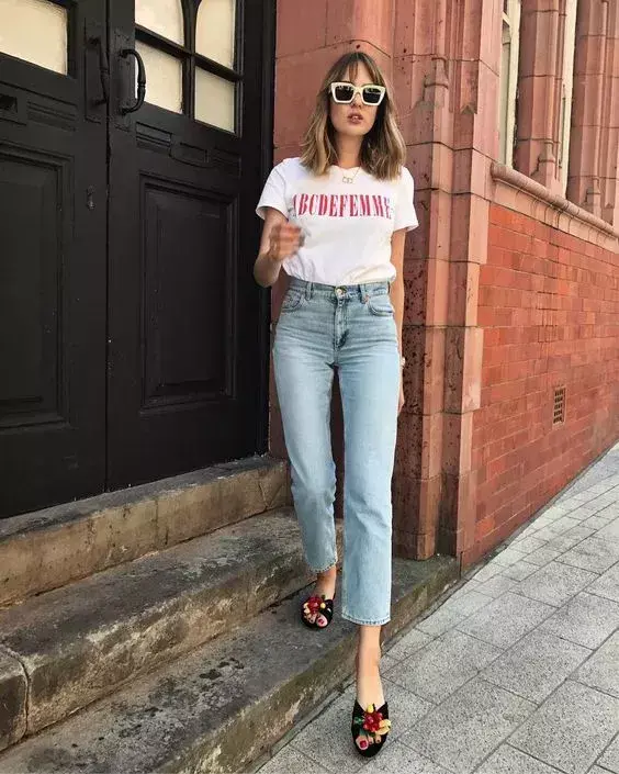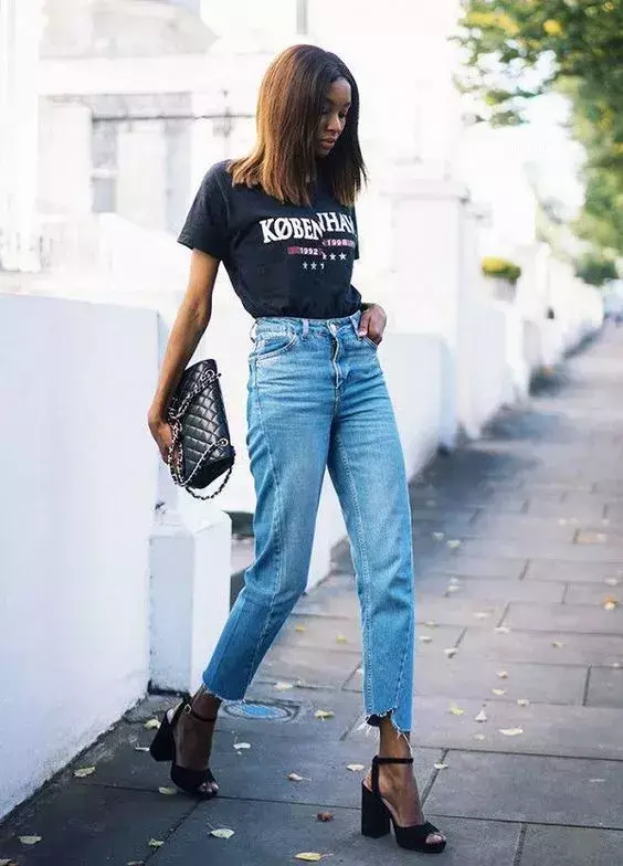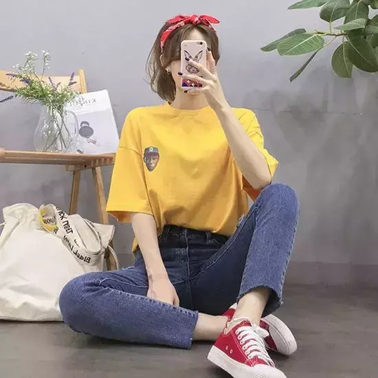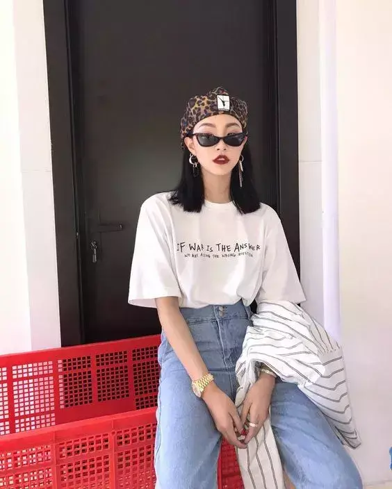 In addition to the loose style mentioned above, you can also wear short T-shirts with jeans. How short can a T-shirt be? It has the same effect as the stomach-exposure outfit.