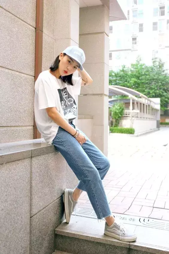 Tall and thin girls must not miss the combination of oversize T-shirts and jeans. This kind of lazy and leisure combination is suitable for tall and thin babies. Only in this way can you give off that casual and casual feeling.
