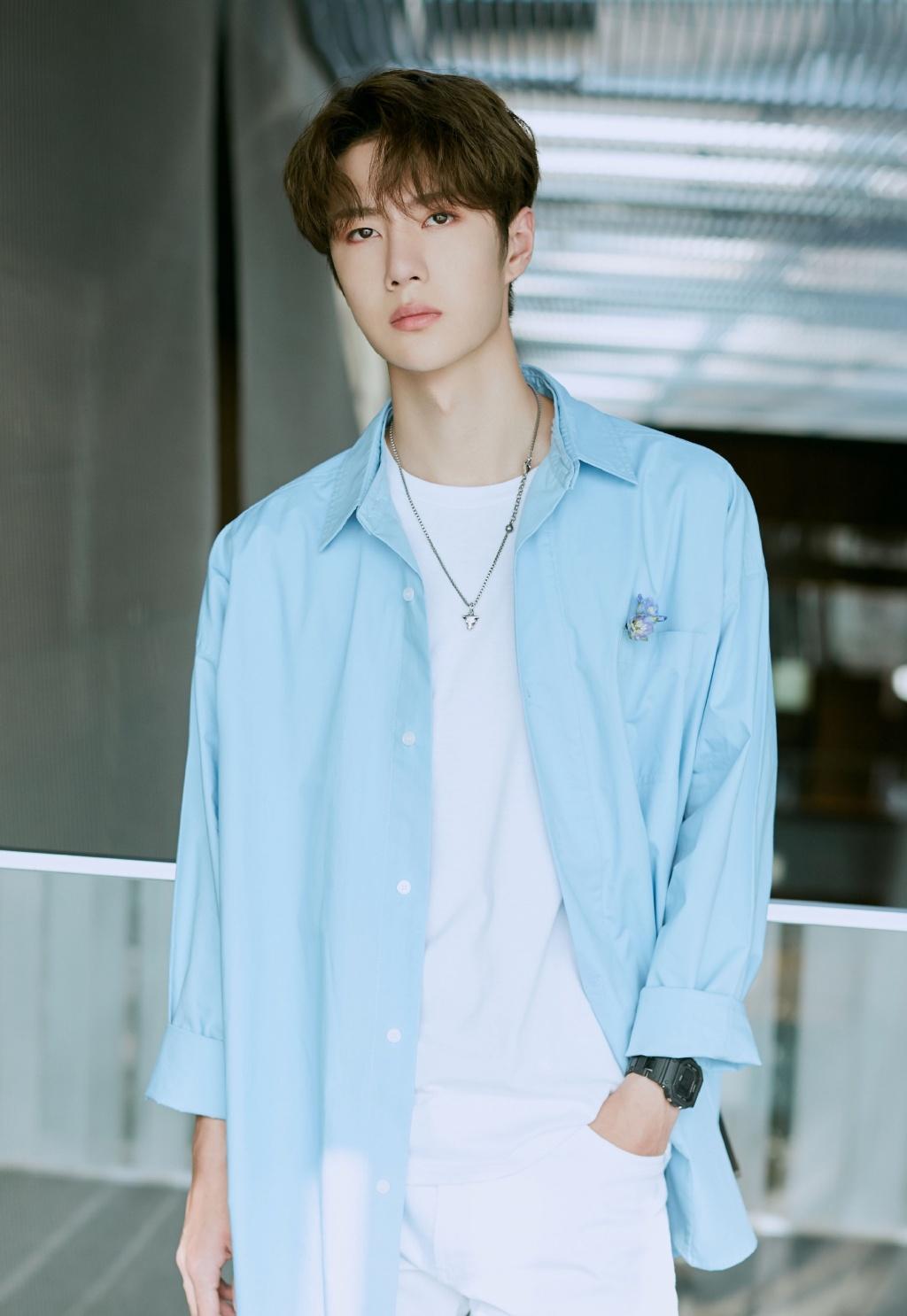 If Yibo wearing a black shirt is cold and handsome Yes, then Yibo wearing a blue shirt is elegant and clean, very simple and pure. He wears a white T-shirt underneath and a pair of white casual pants, making the overall outfit look cleaner and more beautiful. As expected This is Wang Yibo’s delusion in the world.