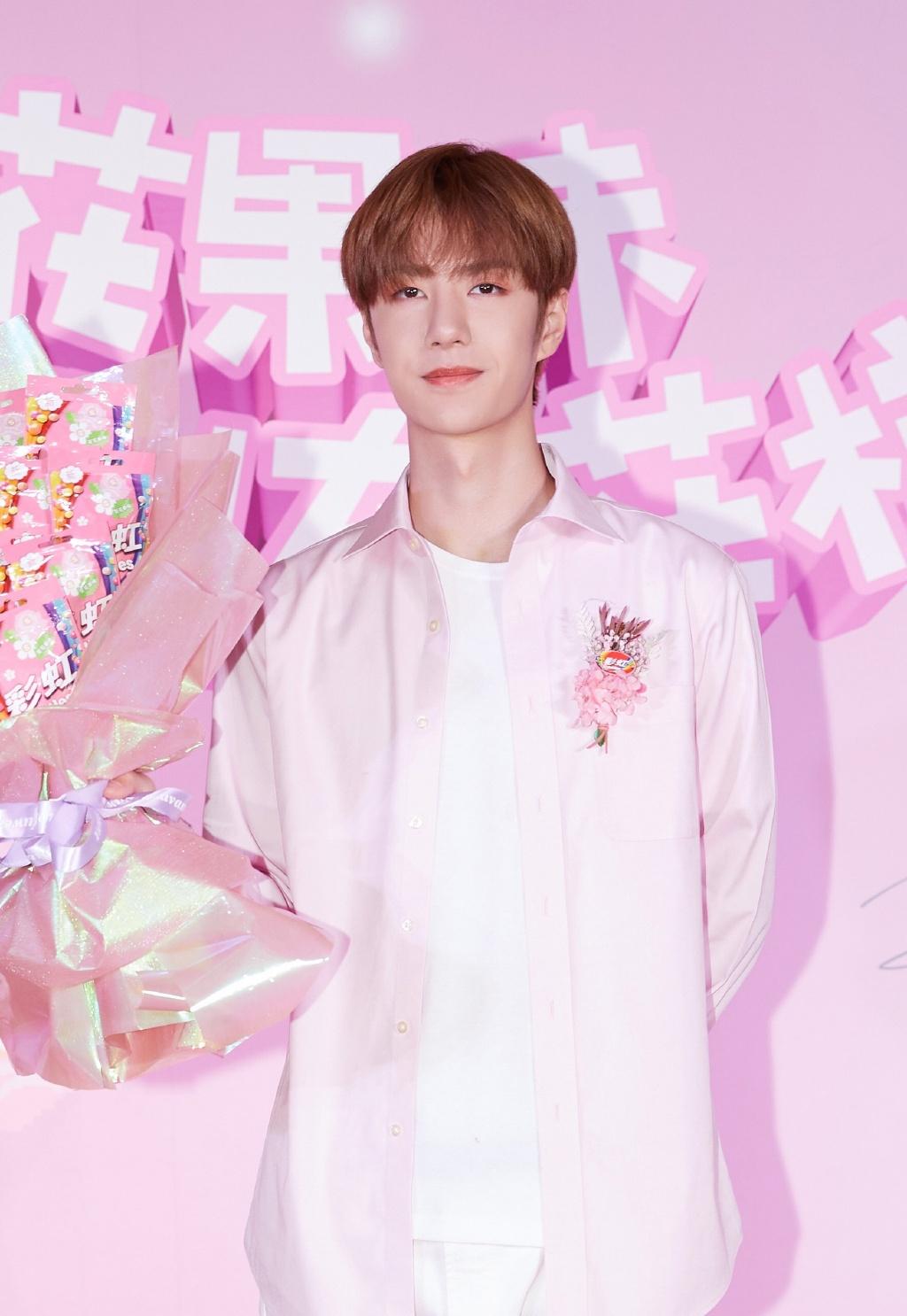 Talked about Wang Yibo in a blue shirt, how could he be less? I got Wang Yibo in a pink shirt. Wang Yibo in a pink shirt is really pink and waxy. He wears a white T-shirt underneath and a pair of white casual pants. He has the feeling of Prince Charming. He is so gentle. .