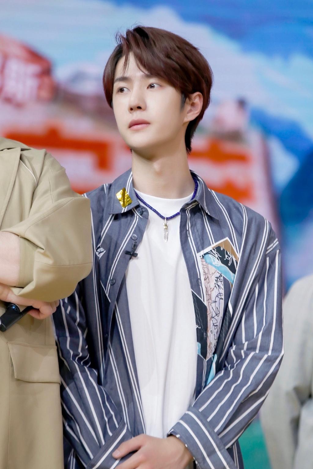 Wang Yibo can really be called a veritable shirt spokesperson. Striped shirts are also the choice of most boys. , this blue and white striped shirt is layered with a white T-shirt. This layering is clean and comfortable, and it looks very handsome and classy when worn.
