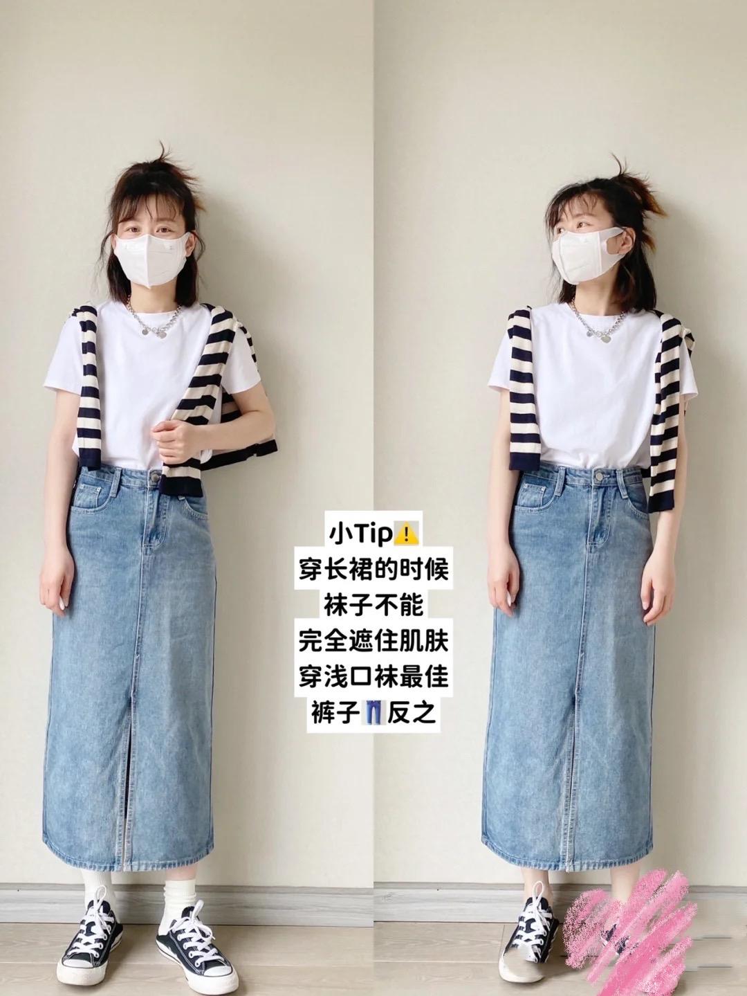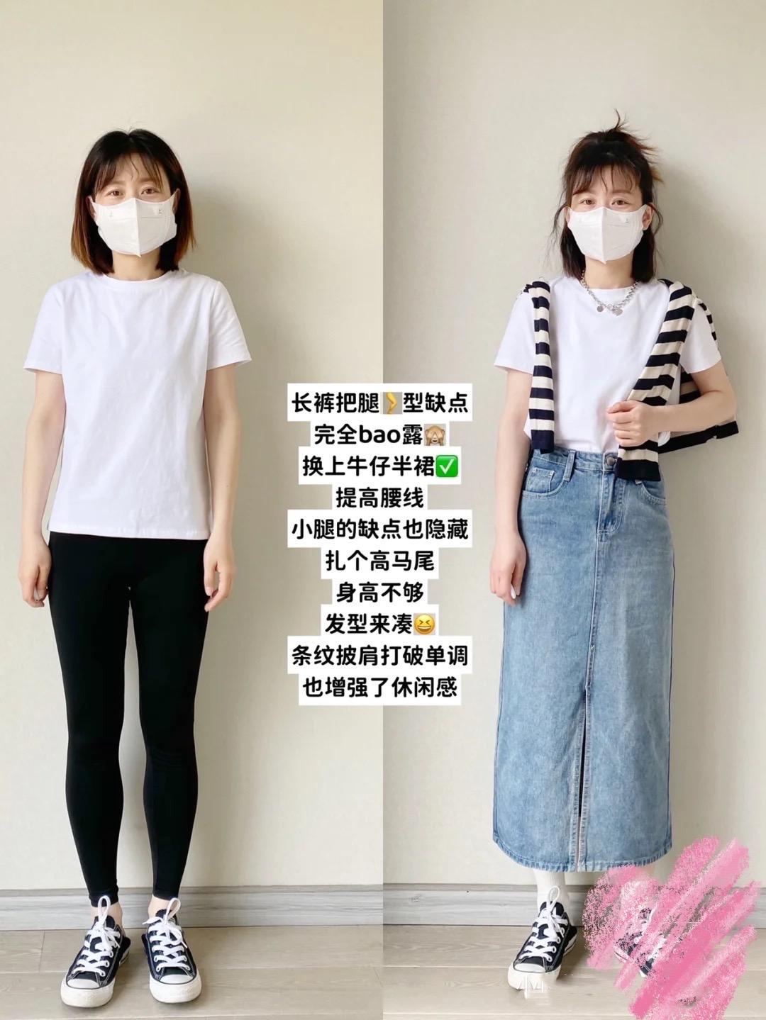A white T-shirt is more refreshing. The conventional way to match it is to wear one Little black pants can easily expose the shape of the legs and the posture is not perfect. Therefore, it can be paired with a high-waisted denim skirt that has the effect of raising the waistline, which can raise the waistline more naturally, optimize the body proportions, and give the overall feeling of refreshing.