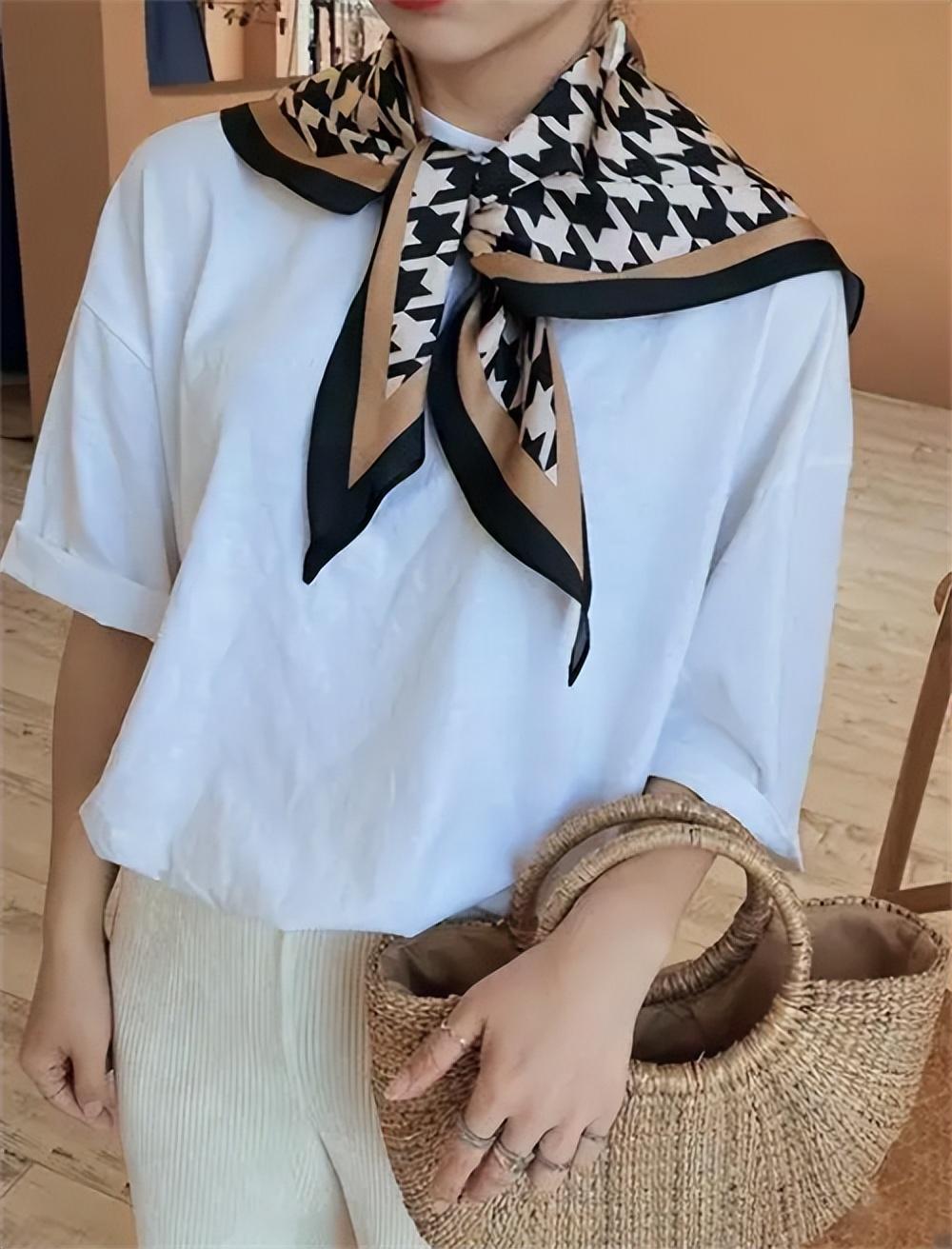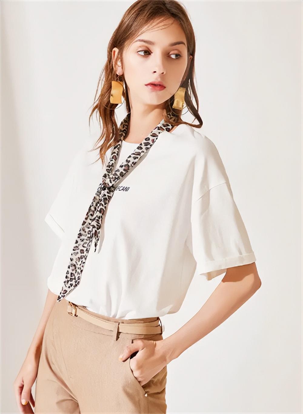 Adding a silk scarf to a T-shirt that looks like a blank drawing board is a very good way to create a new look. Your unique personality.