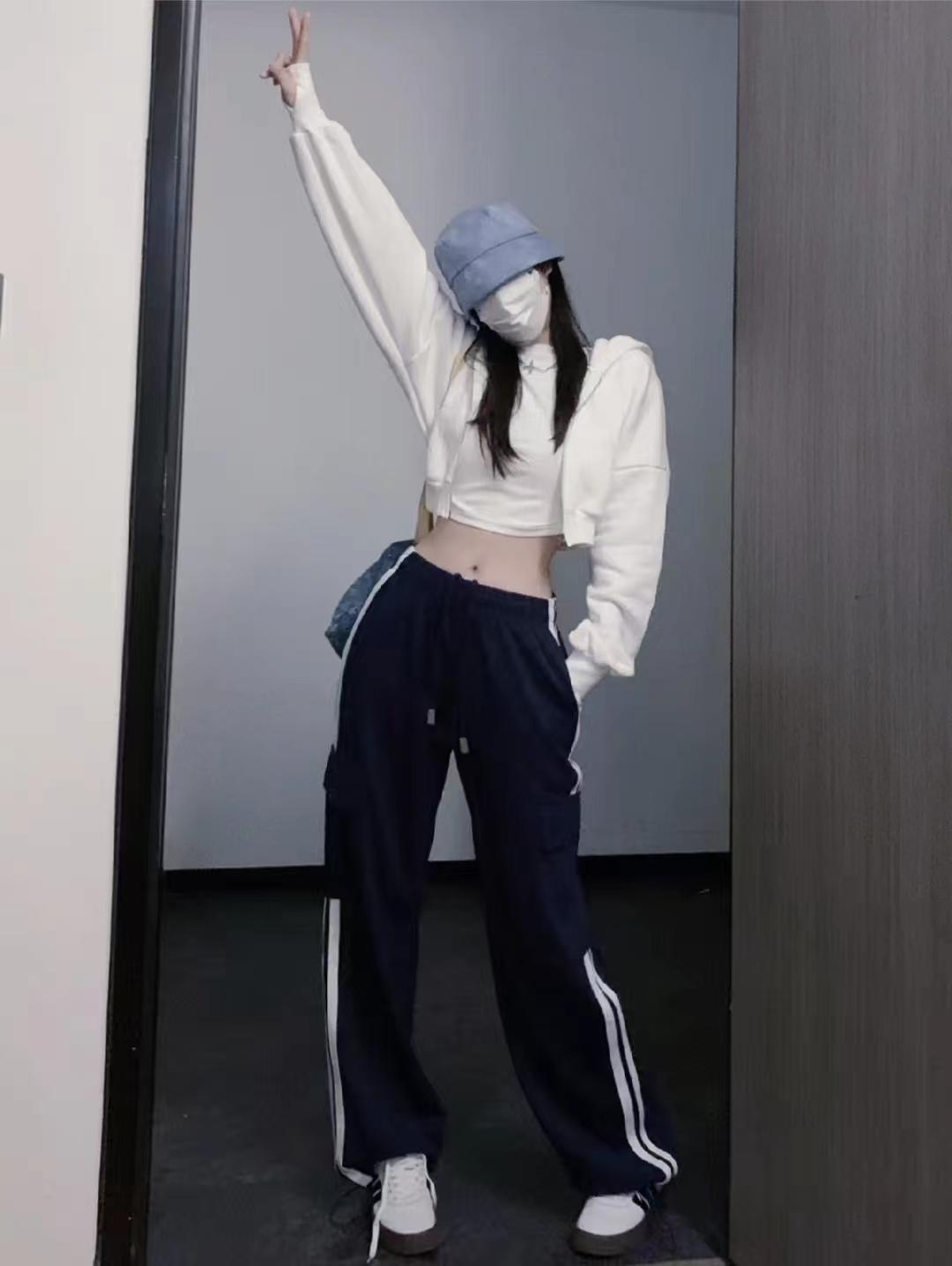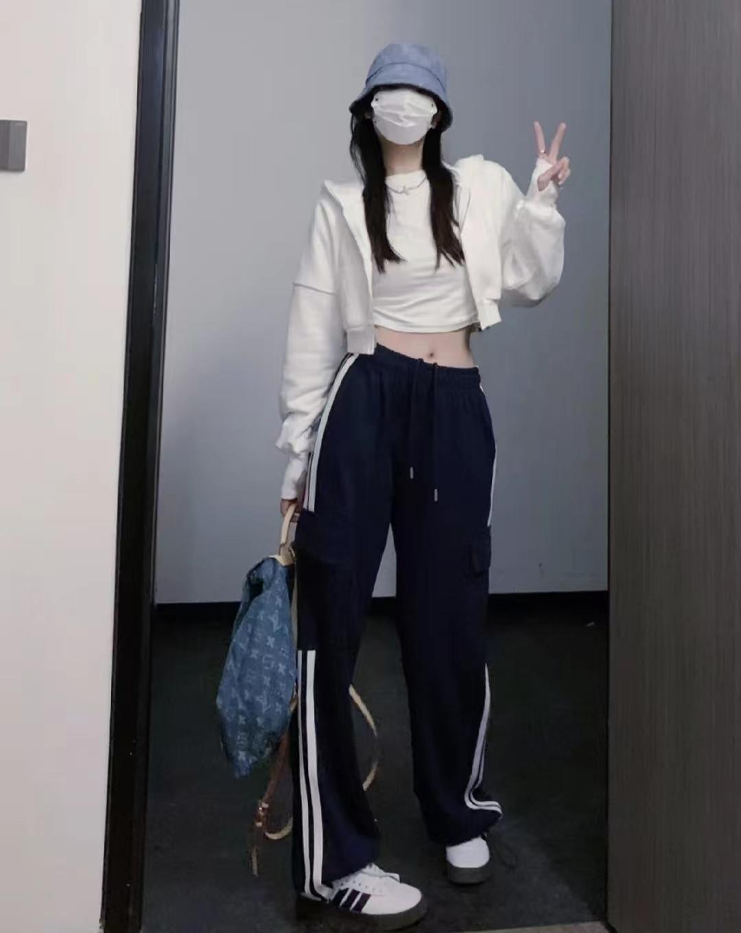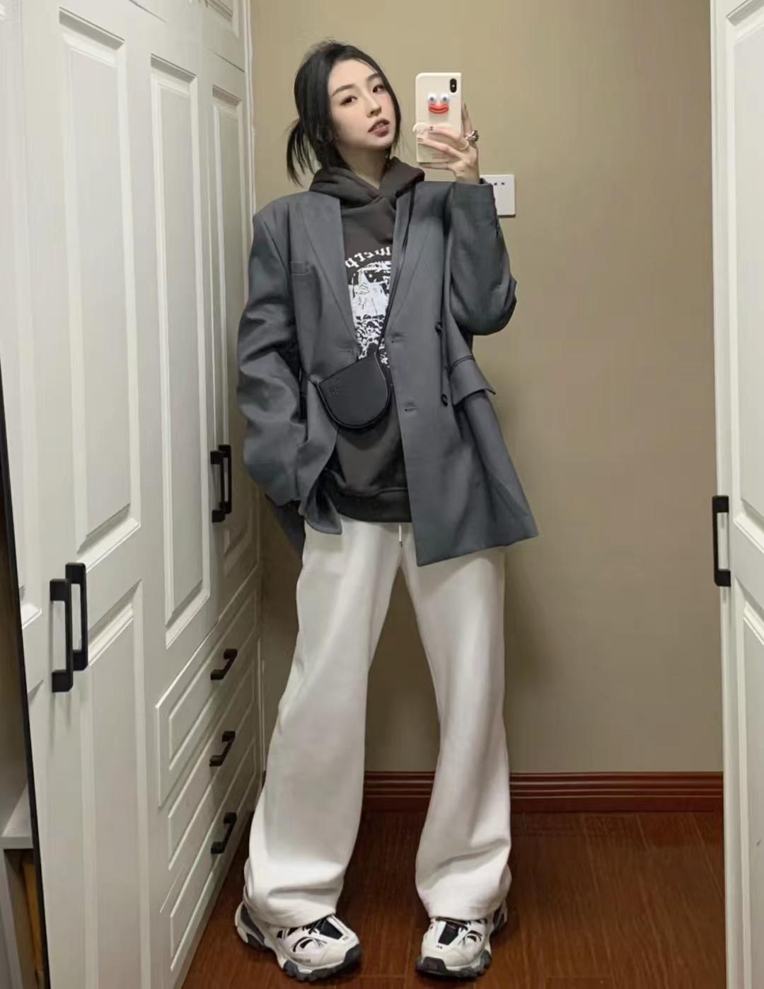 Fleece short sweatshirt, I really like the American retro bella sports style. A short sweatshirt + sweatpants, it looks a bit like a Bella-style hottie. The sweatshirt is plush, so it’s no problem to wear it in early spring.
