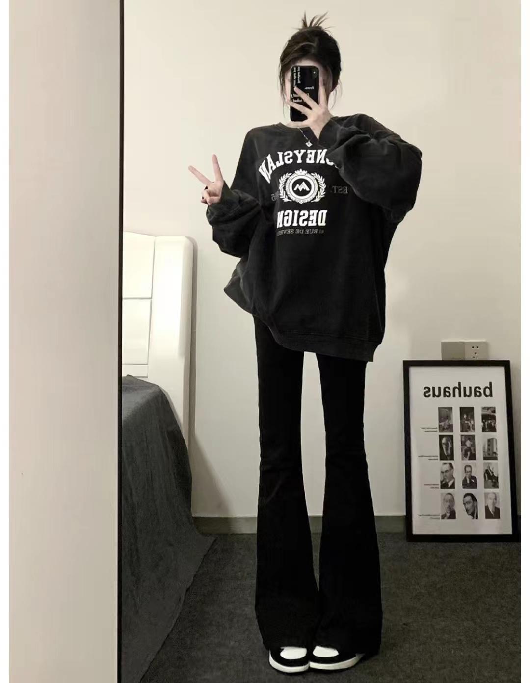 Fleece short sweatshirt, American retro bella sports style, I really like it. A short sweatshirt + sweatpants, it looks a bit like a Bella-style hottie. The sweatshirt is plush, so it’s no problem to wear it in early spring.