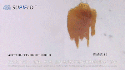 It adopts a new generation of SUPIELD nanotechnology. It can achieve level 5 super-hydrophobic effect on fabrics with a thickness of 1 mm!