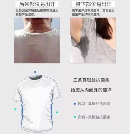 In order to inhibit the growth of bacteria to a certain extent, Supai hydrophobic white T-shirt is added with 3 real silver fibers, which are distributed under the armpits and neckline. .