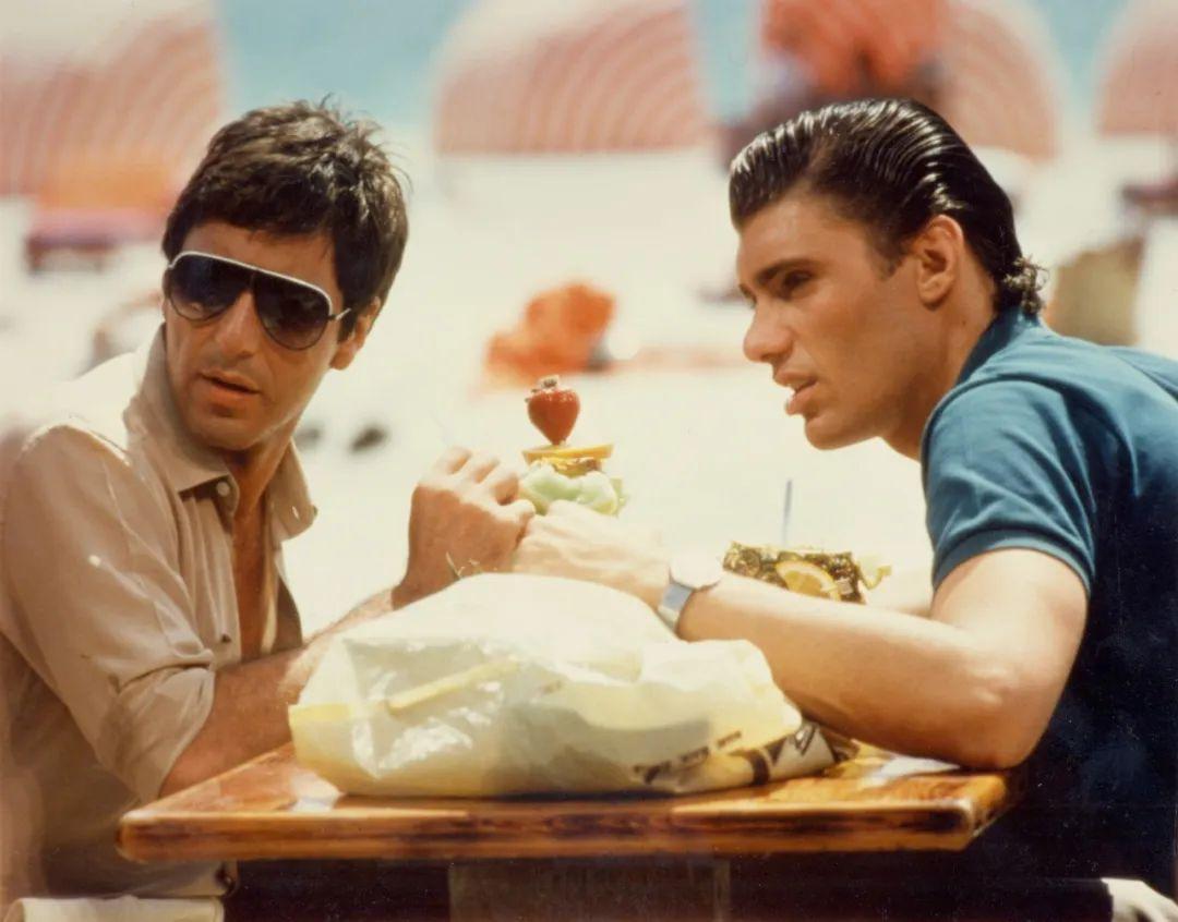 For example, in “Scarface”, the burly little brother next to Al Pacino always appears in a Polo shirt.