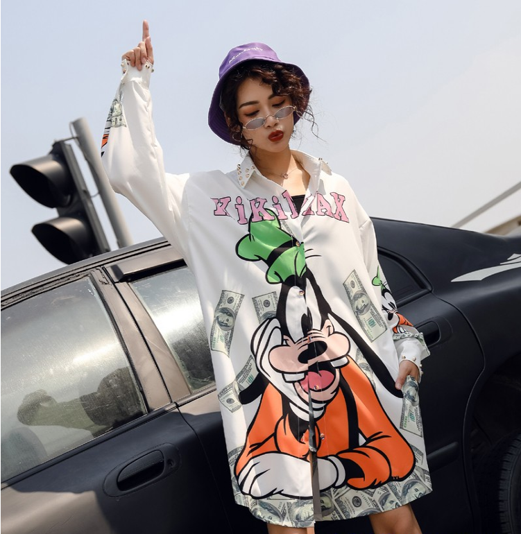 A very comfortable printed shirt. The large fabric print gives people a very strong visual sense. The long version can be worn directly as a skirt, which is very suitable in this spring season.