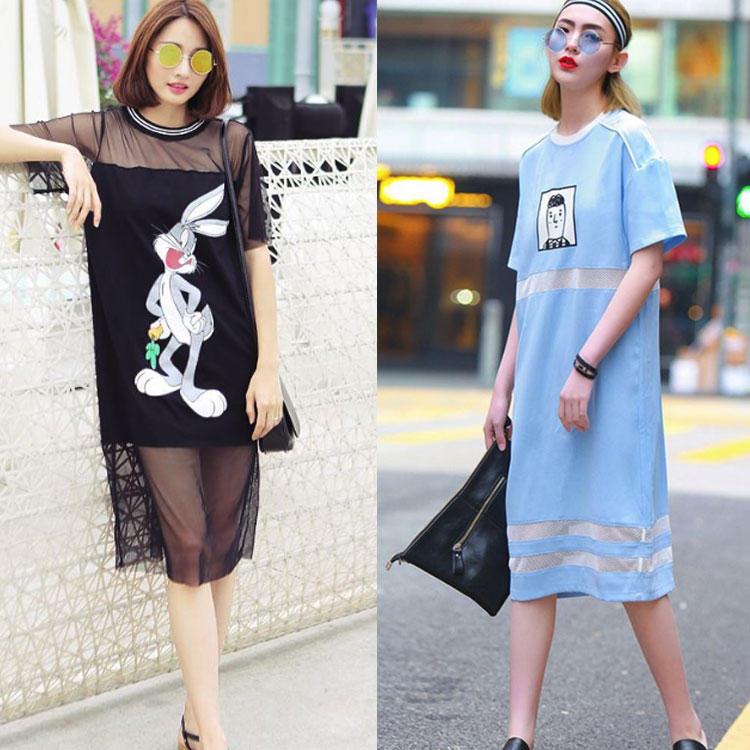 This is a very personalized dress. The upper body adopts a T-shirt style, which is casual and casual, while the hem is With the gauze skirt, you can easily wear it with an elegant temperament, and at the same time, the personalized printed pattern makes it even sweeter and more adorable.