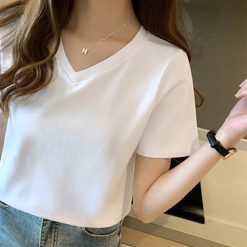 The square collar of white short-sleeved T-shirts is relatively rare. The square collar is also a large neckline. If the face is relatively square, the cheekbones will be more prominent, so it is not recommended. Choose a square neckline