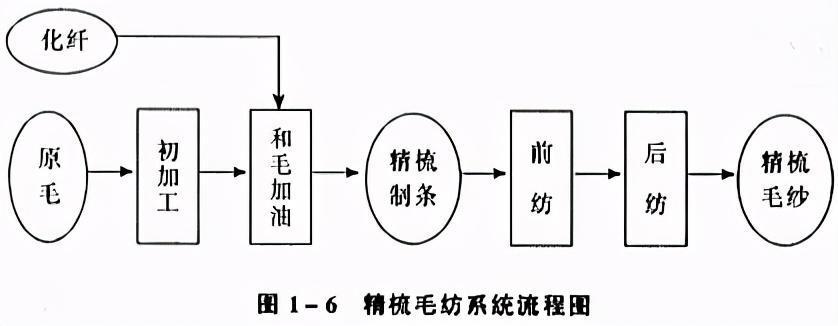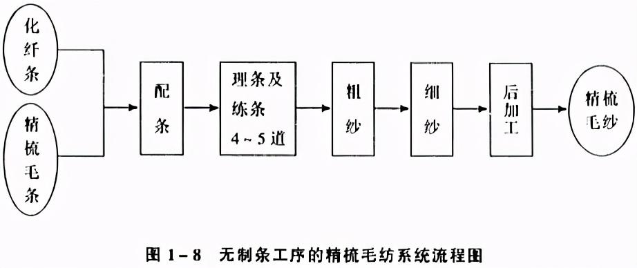 Worsted wool spinning The system has many procedures and long processes, and can be divided into two parts: straight strips and spinning. The spinning system process is shown in Figure 1-6.