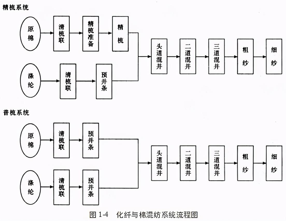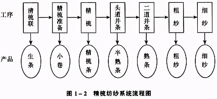 For combing system It is used to spin high-grade cotton yarn, special yarn or cotton and chemical fiber blended yarn. The process of the combing system and the names of semi-finished products and finished products are shown in Figure 1-2.