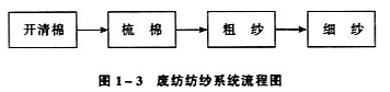 The waste spinning system is used to process low-priced thick special cotton yarn. The process is shown in Figure 1-3.