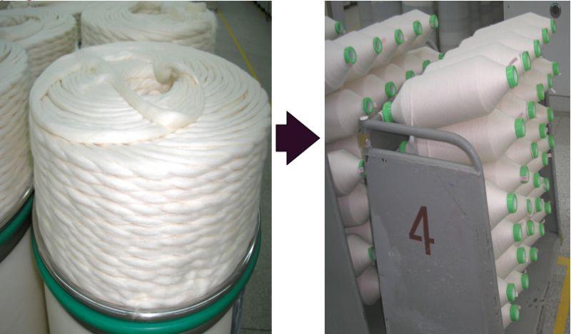 ▲Twisting: yarns are combined together, add a certain twist, and processed into strands.