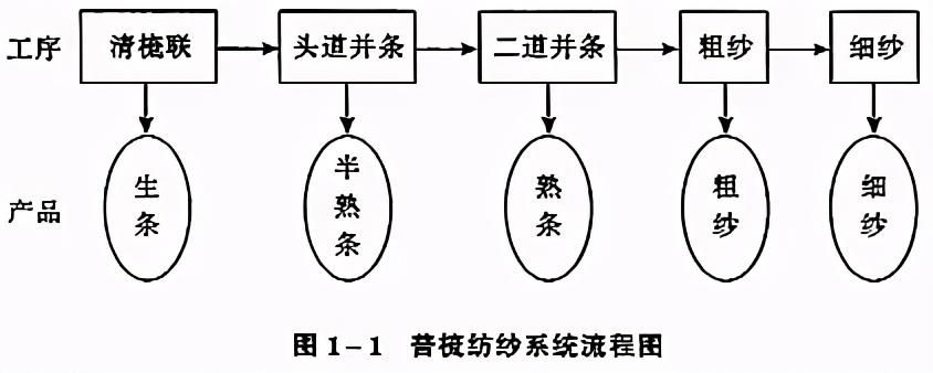Generally used to spin coarse and medium special yarns for weaving ordinary fabrics. The process and names of semi-finished products and finished products are shown in Figure 1-1.