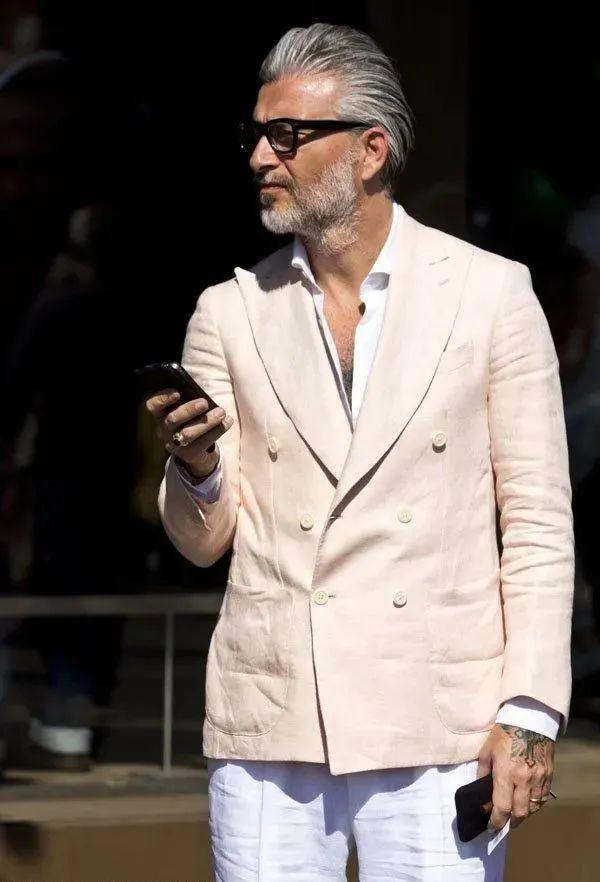 You can also pay some attention to the inner layer of the linen suit, such as layering a T-shirt or choosing a stand-up collar shirt , and can wear it with a unique feeling.