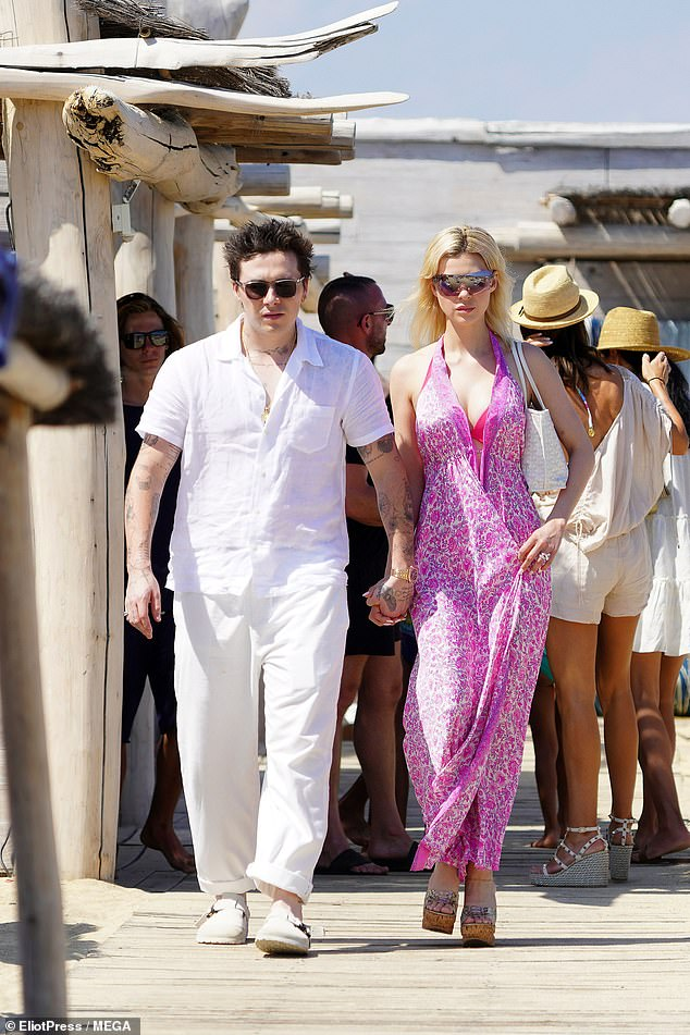 Brooklyn, the eldest son of Beckham, who successfully “married into a wealthy family”, has been dating in the past two days The rich and beautiful wife Nicola went to the French resort of Saint-Tropez for her honeymoon. Nicola is wearing a printed skirt, while Dabu has an all white look. A white linen shirt brings out the feeling of being on vacation with money and leisure.