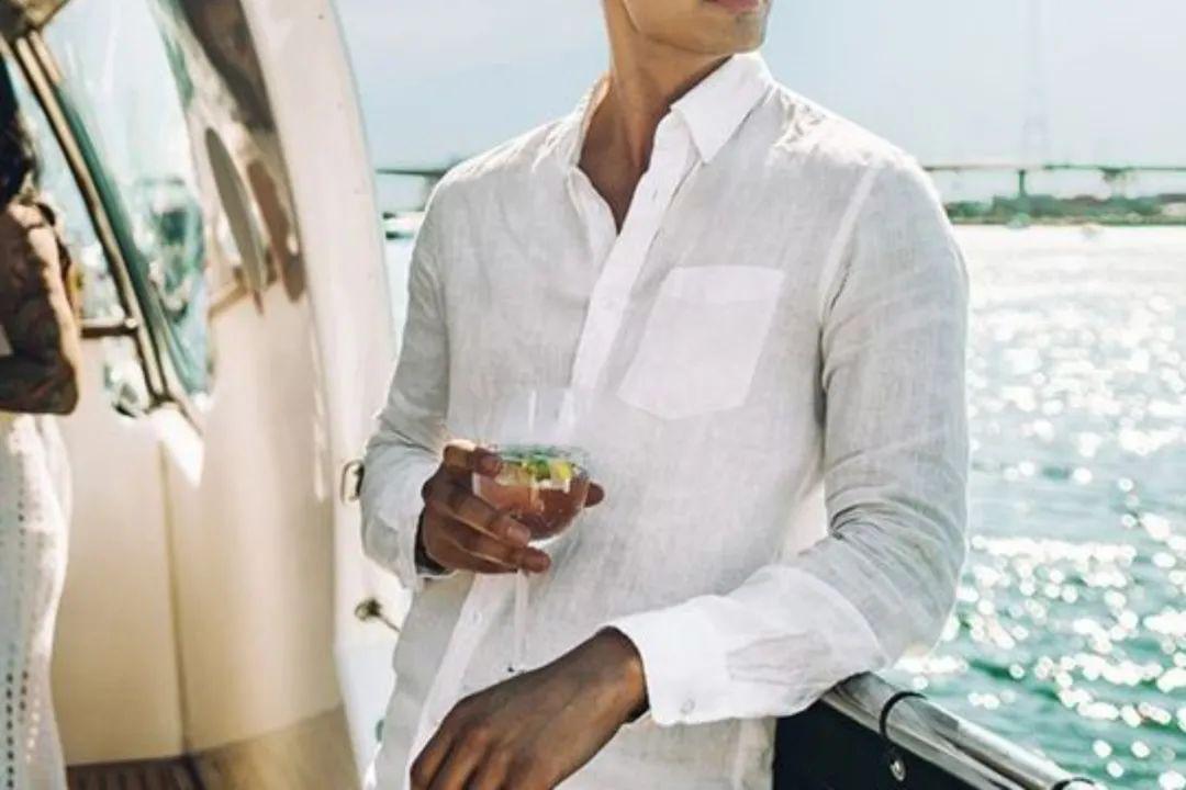 In summer, when the weather is hot, a linen shirt is also good to wear alone. The light and breathable material can keep you cool. Pair it with light-colored trousers. The effect is harmonious.