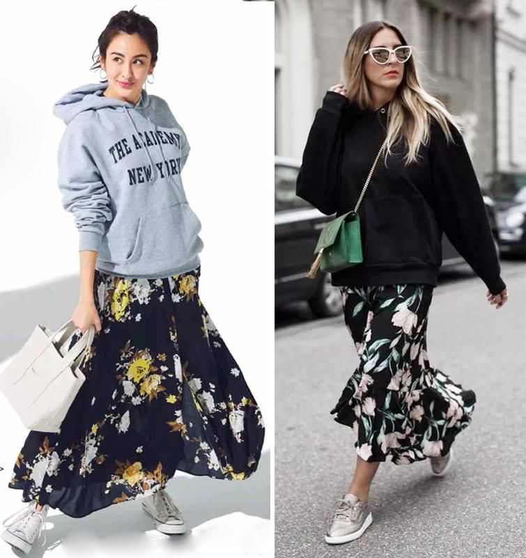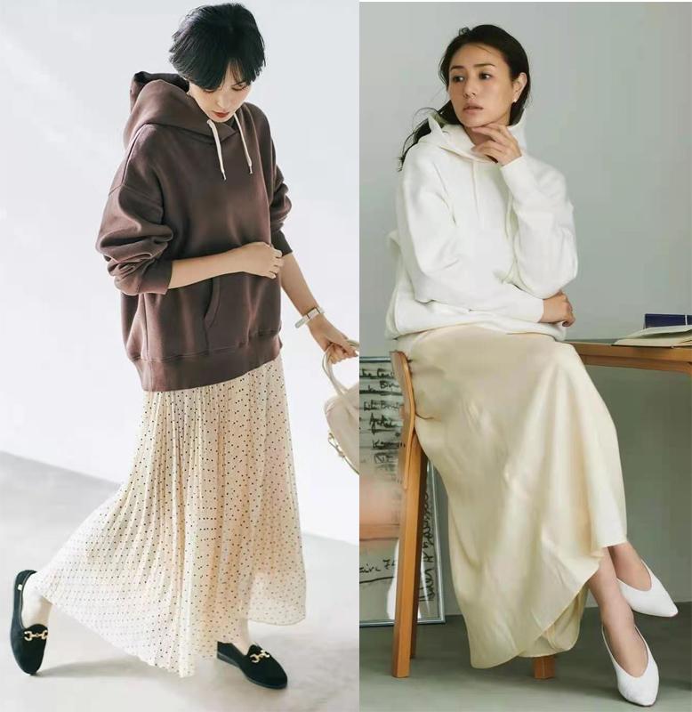 Fashion in recent years The trend is all about mixing and matching. The combination of strong and soft, beautiful and handsome style is very popular among fashionistas. The sweatshirt is handsome and neutral, while the skirt is elegant and feminine. The combination of the two perfectly fits this trend of mixing both strength and softness.