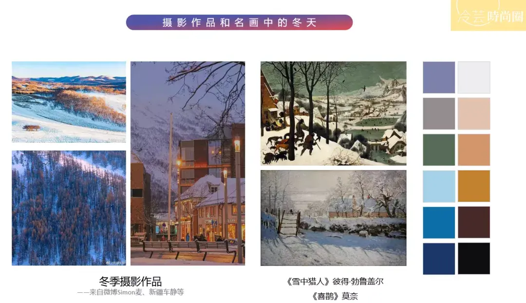So we look at two dimensions as a whole, one is to choose the winter feeling from excellent works s color. The second is to make judgments from the clothes we already have and match them with some colors. On the right are the colors I extracted from the work, which you can use as a reference.