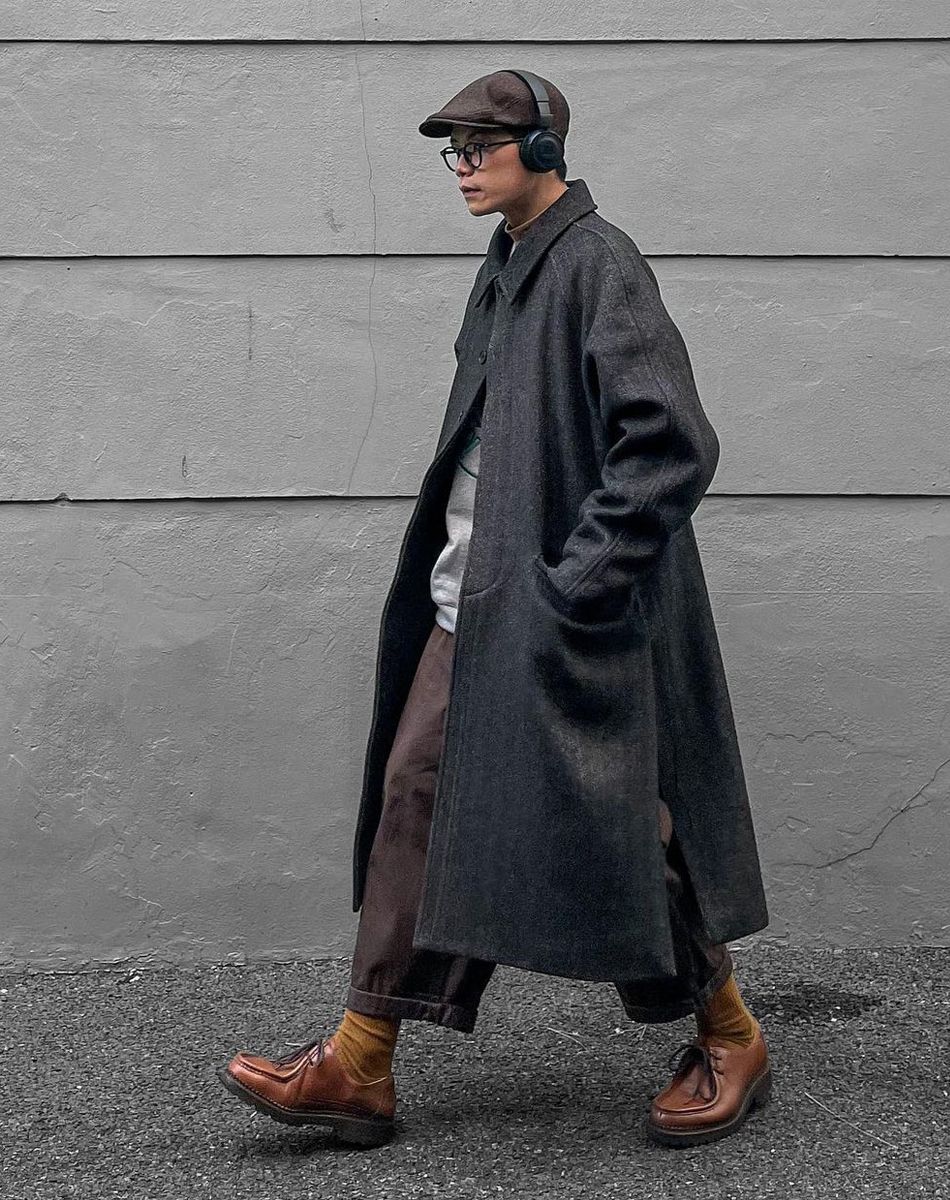 When using a long coat to create a combination of layering + wide pants, it is especially important to choose the right length of the coat. Loose trousers will naturally shift people’s visual center of gravity downwards. If the jacket is not long enough, it will make the look look particularly short. Therefore, a jacket that is above the knee is the best choice.