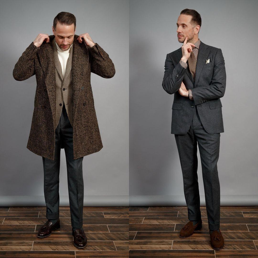 Or, layering a long coat directly on top of the suit can also make the look The shape looks more gentlemanly and high-end. The smoothness of the long coat cut not only adds momentum, but also brings elegance. In addition, this way of wearing is also very convenient. It can be layered outdoors. After taking off the coat indoors, you will still have a complete, decent and exquisite outfit.