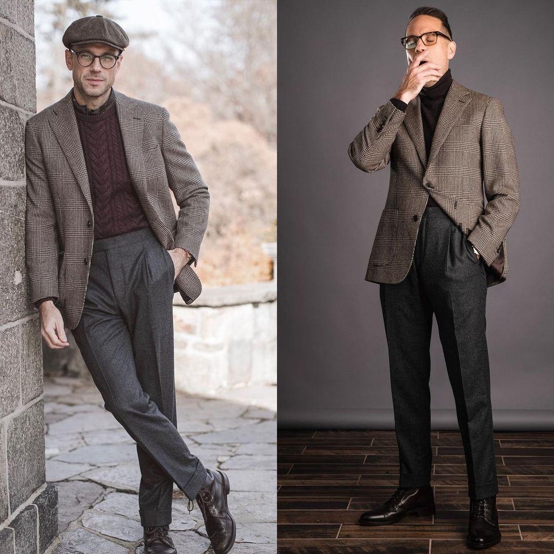 In addition, you can also choose to have textures A sexy suit jacket makes the look richer. Compared with solid-color suits, decorations such as plaid will naturally bring a bit of British style to the look, making the combination look more eye-catching and fashionable. Compared with solid-color suits with jumping colors, textured styles have a wider range of applications.