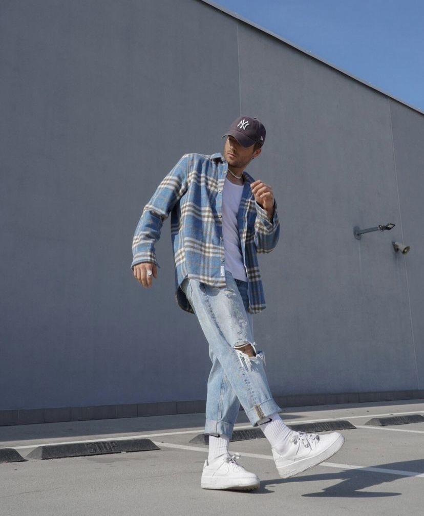 Because plaid shirts themselves are rich in color patterns, so, according to the wearing principle of “combination of traditional and simple”, plaid shirts When worn as a jacket, it should be paired with simple inner items, such as a white T-shirt.