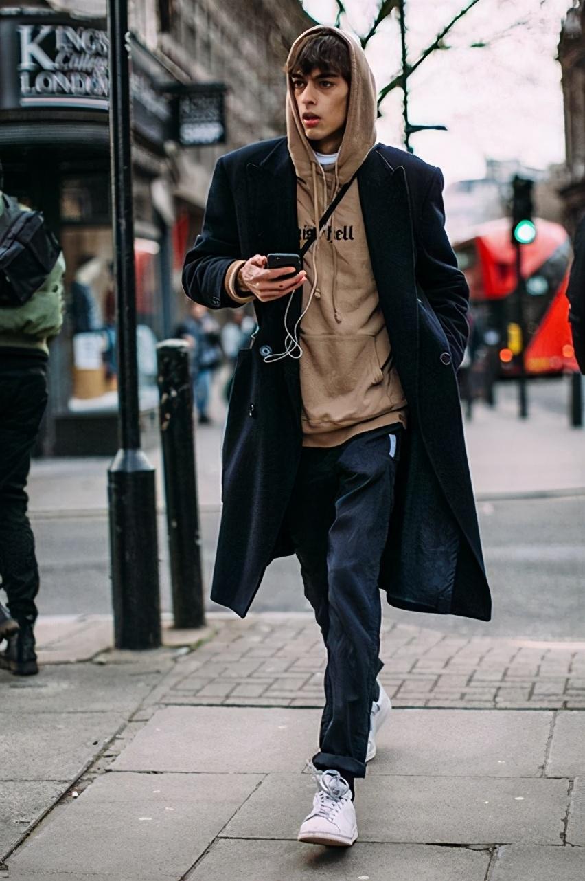 This is how it is with styling. You need to keep trying and exploring. Only when you dare to wear it can you achieve a satisfactory styling effect. Just like the classic coat matching, not only shirts can meet its matching needs, the matching effect of hooded sweatshirt is equally good, both warm and fashionable.