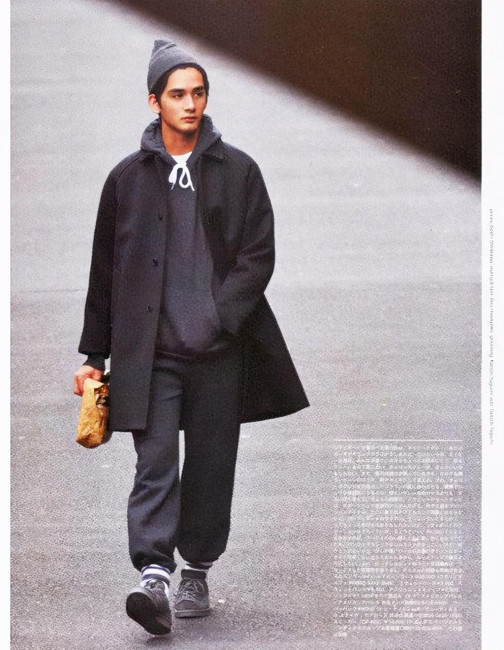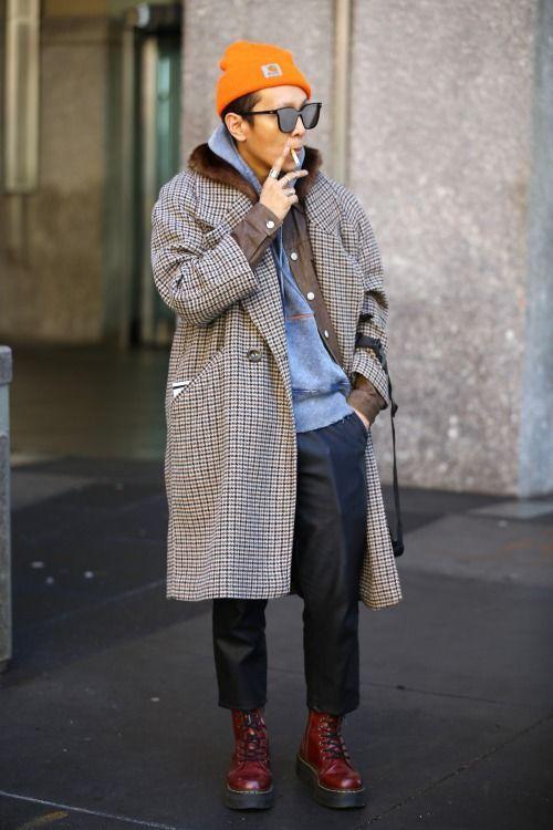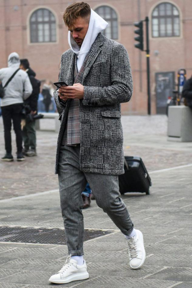 The gray plaid coat, regardless of the size of the plaid pattern, its high-end gray tone instantly enhances the style of the look. When paired with a hooded sweatshirt, this coat style is usually not too long and looks very clean and neat. At this time, a hip-hop style baseball cap is trendy and fashionable.