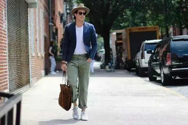 Paired with a casual white T-shirt and white shoes, the overall look will weaken the seriousness of the suit and add a casual and refreshing feeling.
