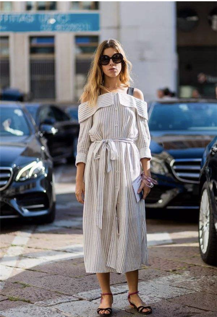 The so-called visual stretching is to remove the position of the weakened shoulder line and visually stretch it longitudinally. That is to say, through matching, you can extend your lines and move the visual center downward. You can break through the original look by layering or deforming clothing. You can also choose a long dress. Be sure to choose a long dress with a girdle design, so that the body lines can be lengthened.