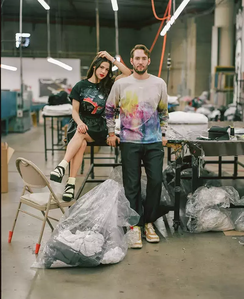 扎染T恤的制作,由两位主理人采用水晶注入染料的方法,进行手工的艺术绘制。简单来说,T恤就像是一块画布,他们就是画家。不同于别的品牌的染色T恤,你还能在