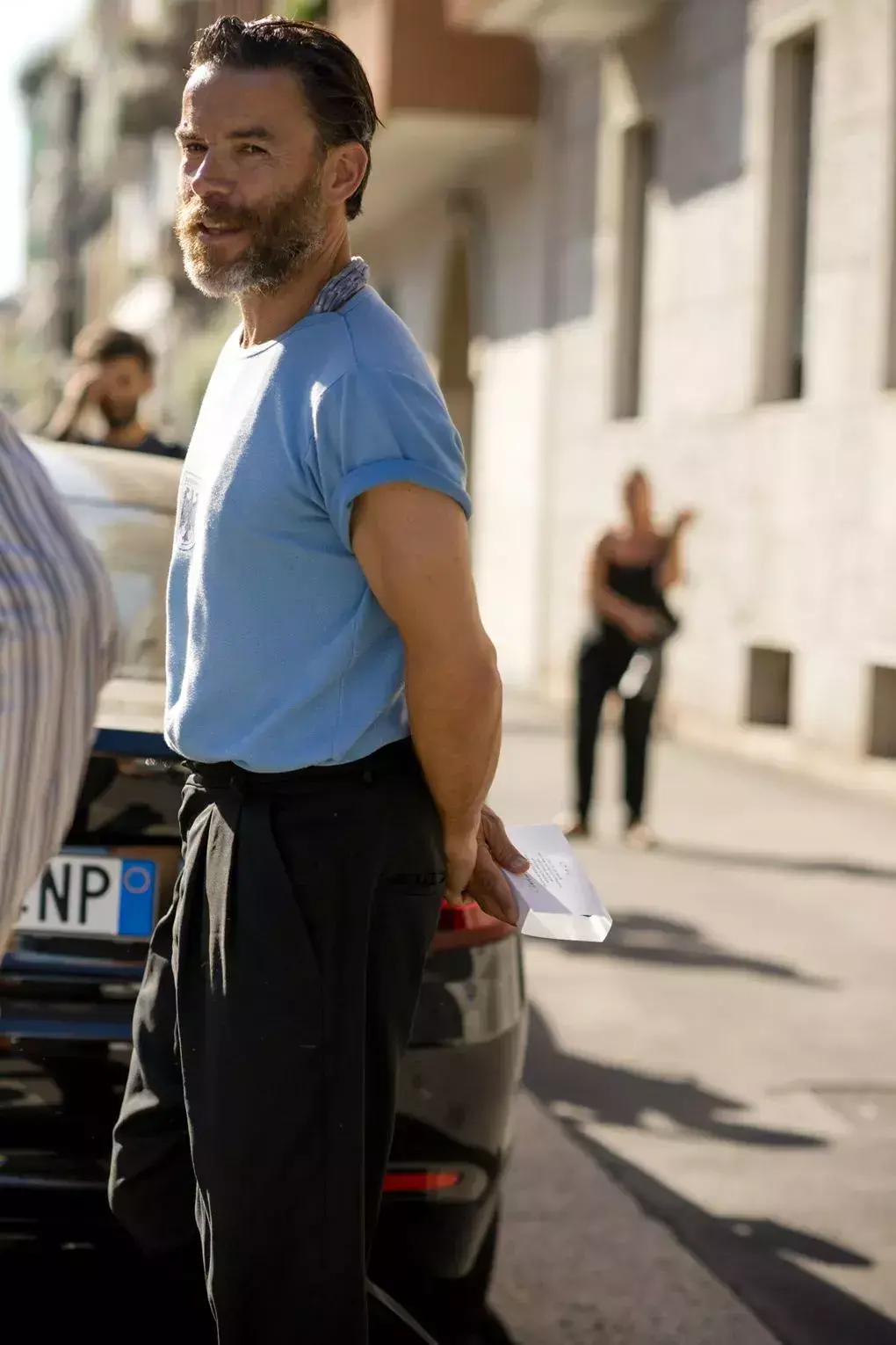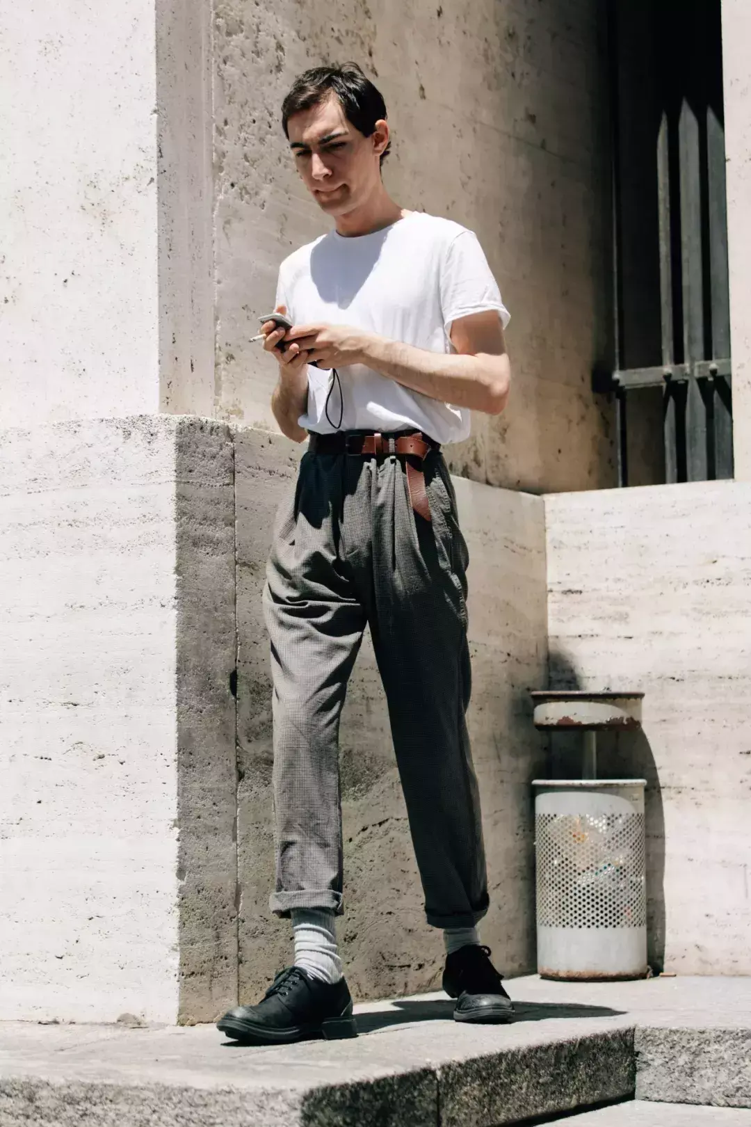一般来说,T恤搭配一条西裤,塞下摆是最普通安全,也是最多人选择的方式,优雅斯文也舒适。但那么多人都在穿,显然是不符合我们今天所说的独树一帜的主题。