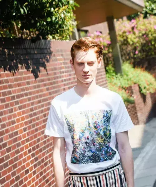 除了T恤搭配清一色的纯色裤子,之前我们也介绍过可以加条格纹裤款。不过你想要更加骚气的话,一些鲜艳充满色彩感的裤子不妨也可以尝试一下。