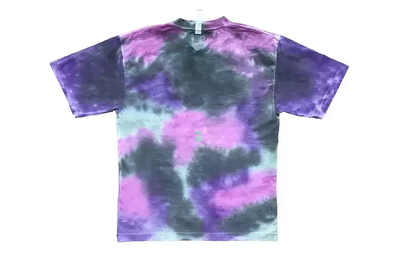 Board Crystals 的T恤少见有单一的纯色扎染,全部都是缤纷的渐变色彩。衣物本身有最基础的白灰等底色,然后将晶体染料“ 随意