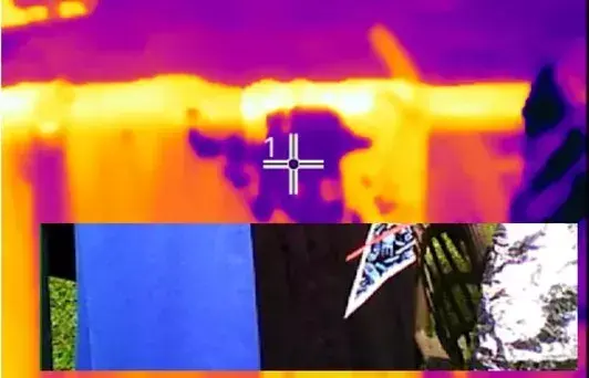 What things are more reflective in infrared? Space Blanket – That shiny Mylar blanket that can be used in an emergency. Is there anything else that can do it? It is undoubtedly “water”. Come on, let’s take a look at this. It’s a t-shirt with some water sprinkled on it and a piece of mylar next to it.