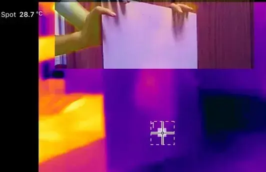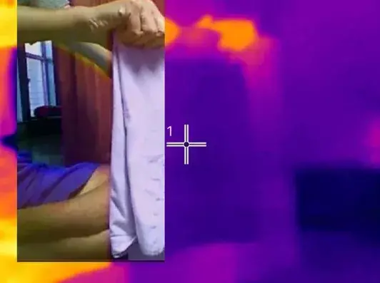 How about testing it again? To measure the infrared reflectance (not a real term) of different shirts, I set up the following experiment. Use an iron that is heated (but not extremely hot) enough to iron out wrinkled clothing as the infrared source. I placed it in the corner so my infrared camera couldn’t pick it up. I will then hold different objects in front of the camera to see how they reflect infrared light.