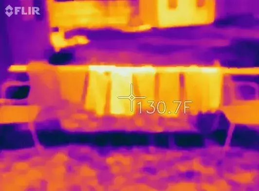 From this picture we can see the temperature of the shirt. Okay, technically there’s a little problem with measuring the temperature, but I’ll get to that as soon as possible. The black T-shirt on the right measured 131.0 degrees Fahrenheit (about 55 degrees Celsius), and the white T-shirt on the left measured 111.8 degrees Fahrenheit (about 44 degrees Celsius). It’s obvious that black shirts are warmer. Other than that, there seemed to be no other surprises.