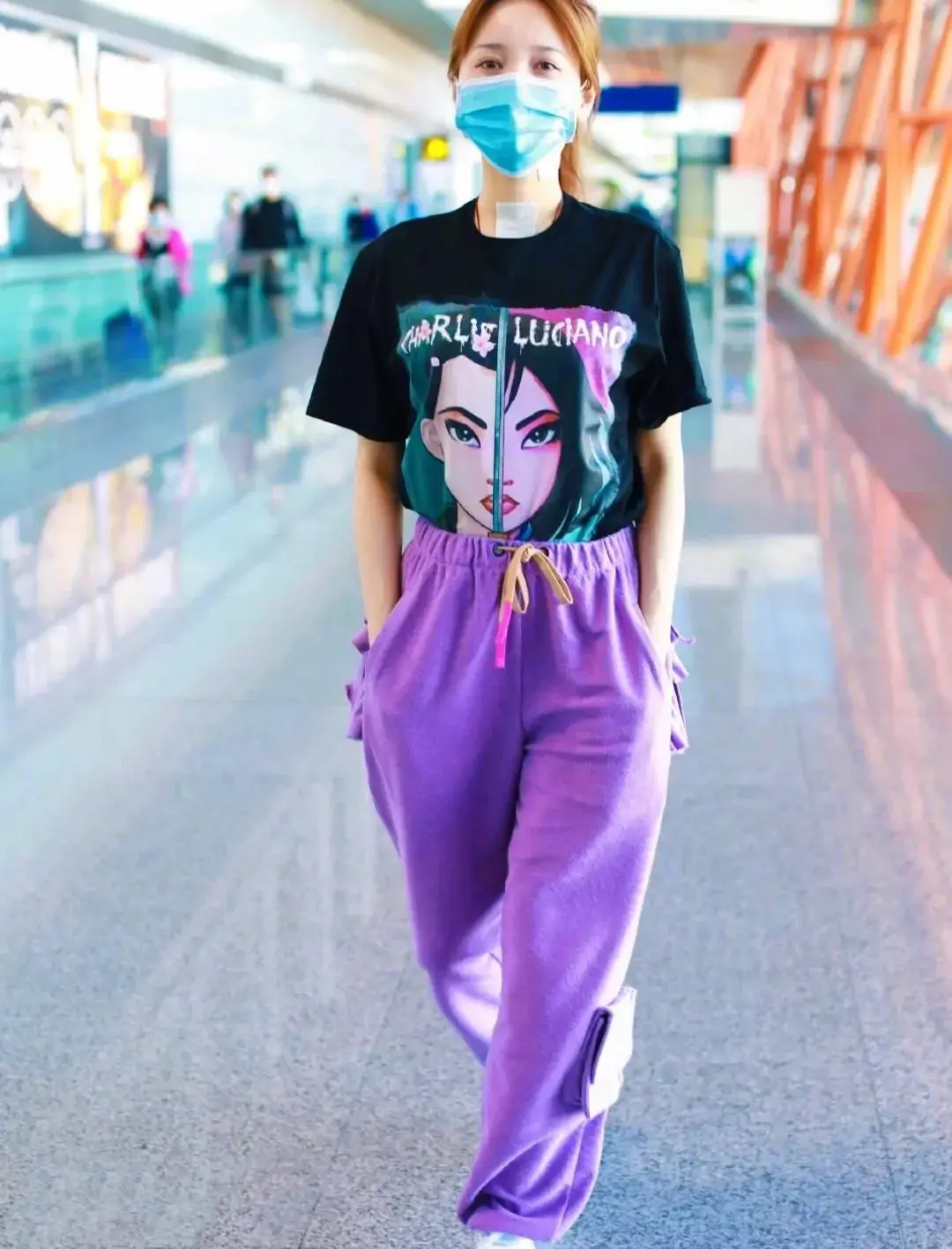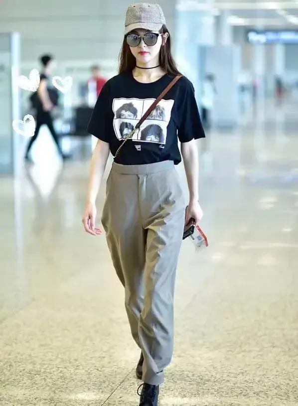 Long time no see Jinsha, because “Sister Riding the Wind and Waves” once again Appearing in front of everyone, she recently appeared at the airport, wearing a black T-shirt and sweatpants. The whole outfit looks so casual and comfortable, full of sports style ~ black portrait pattern printed T+ purple sweatpants, high ponytail, youthful and Western style. The ankle-tied sweatpants are also very friendly to little girls. The hem of the T-shirt is all tucked into the pants, visually giving a sense of height.