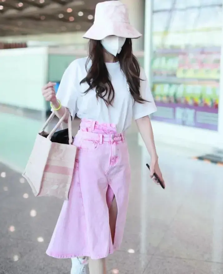 In this summer, T-shirts are still the mainstream in the fashion circle , among the many colors of T-shirts, clean white T-shirts have the highest utilization rate. Firstly, this color is versatile, and secondly, it is very refreshing to wear, especially suitable for sultry summers. However, some girls think that white T-shirts look fat and are not stain-resistant, but as long as you choose the right style, look at Yang Ying’s outfit. She appeared at the airport, wearing a white T-shirt and a pink slit skirt. The pink color makes her look girly, and her big wavy hair is spread over her shoulders, showing her gentleness!