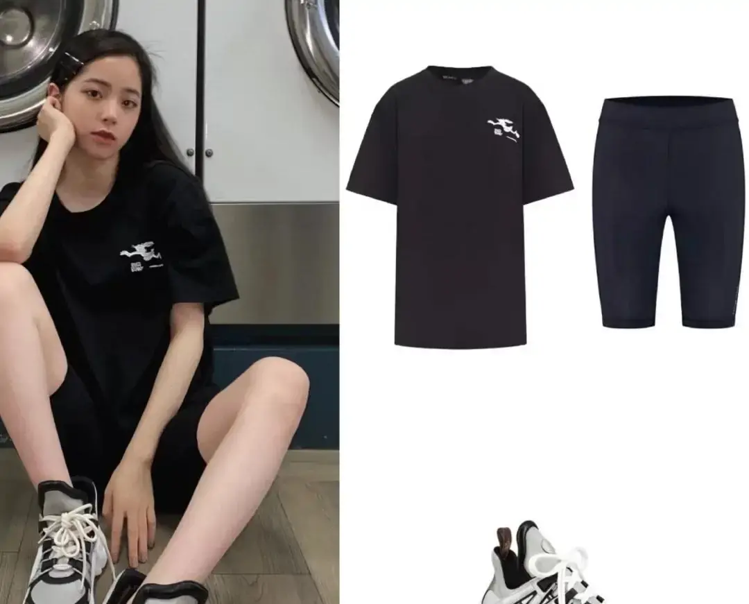 Ouyang Nana is also very fond of wearing T-shirts and cycling pants. She wears black T-shirts and black cycling pants. The combination looks very cool, is there anything wrong? The shape of the T-shirt is loose and the length is just above the hips, which can just cover up the shortcomings of the figure. With the black modification, the figure looks slimmer. The top and bottom are tight. This way of wearing is suitable for fat girls. Extremely friendly.
