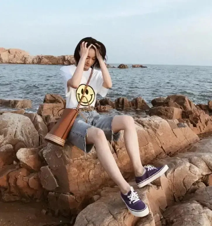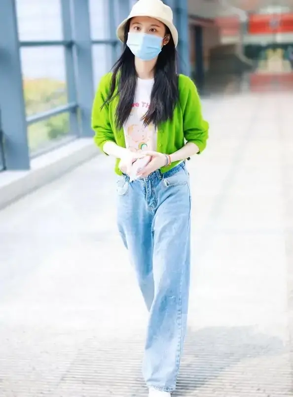Furthermore, for girls with thick thighs, it is not appropriate to match them with shorts. Rather than matching them blindly with shorts, this summer, you should try pairing them with dad pants. The so-called dad pants simply refer to mid-length pants. These pants have a loose fit and are above the knee, so even petite girls can hold them! Zhang Xueying also chose a T-shirt and dad pants for her private outfit, which looks very simple and casual.