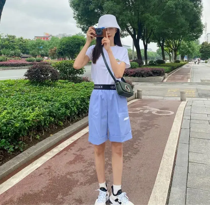 The biggest advantage of dad pants is that they are comfortable to wear and look slimming. They are especially suitable for girls with thick thighs. They can hide the fat on the thighs very well. . In terms of matching, simply pair it with a T-shirt. Take a look at Shen Mengchen’s recent personal clothes, white T + blue dad pants, simple and fresh, it is really comfortable and comfortable to wear in summer. Tuck a T-shirt into your pants to help raise your waistline and elongate your legs. Then wear a fisherman hat. You don’t have to worry about getting tanned when you go shopping. It’s fashionable and trendy!