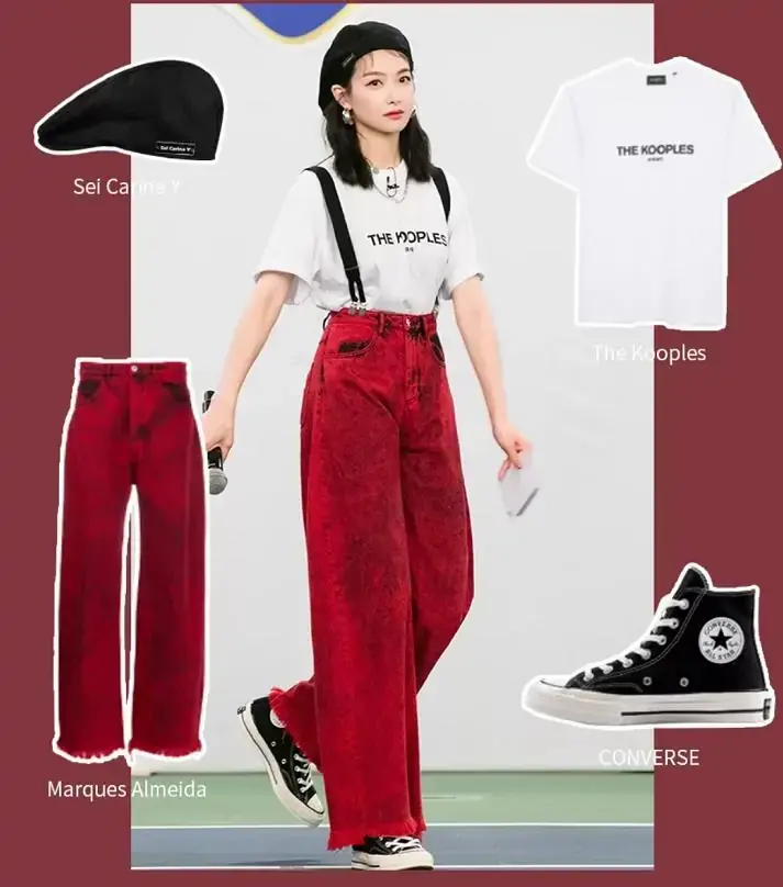 As we all know, Song Qian’s clothes have always been very good. Online, there are several remarkable outfits in “Produce Camp 2020”. This combination of T-shirt and high-waisted wide-leg pants is really the first choice for girls with short legs! Red suspenders, high-waisted wide-leg pants, paired with a white T-shirt. The clean white T-shirt just weakens the hot feeling brought by the red pants. Paired with a pair of canvas shoes, it looks very simple, but in fact it is full of style.