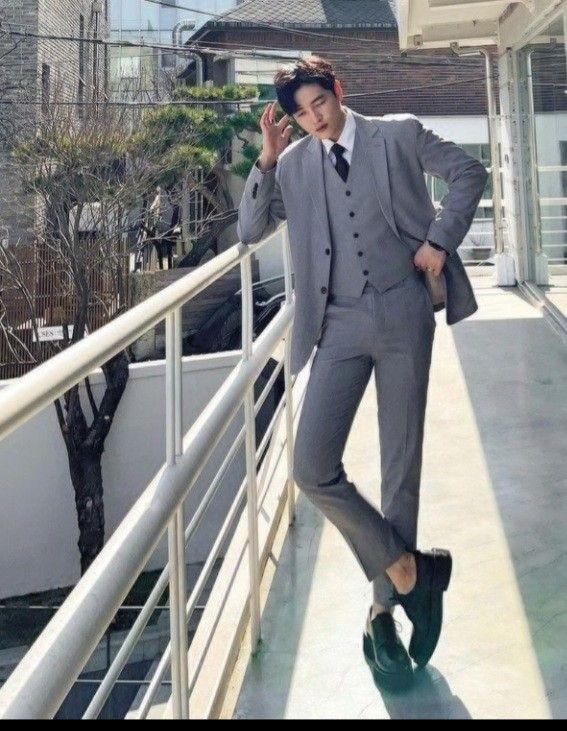 As the name suggests, it is a clean and neat suit. Compared with black and white, gray It is more elegant, and the overall highlight of this look is the gray vest underneath, which makes it look like a president. Coupled with the bright colors, it is completely inseparable from the eyes when going out on the street.