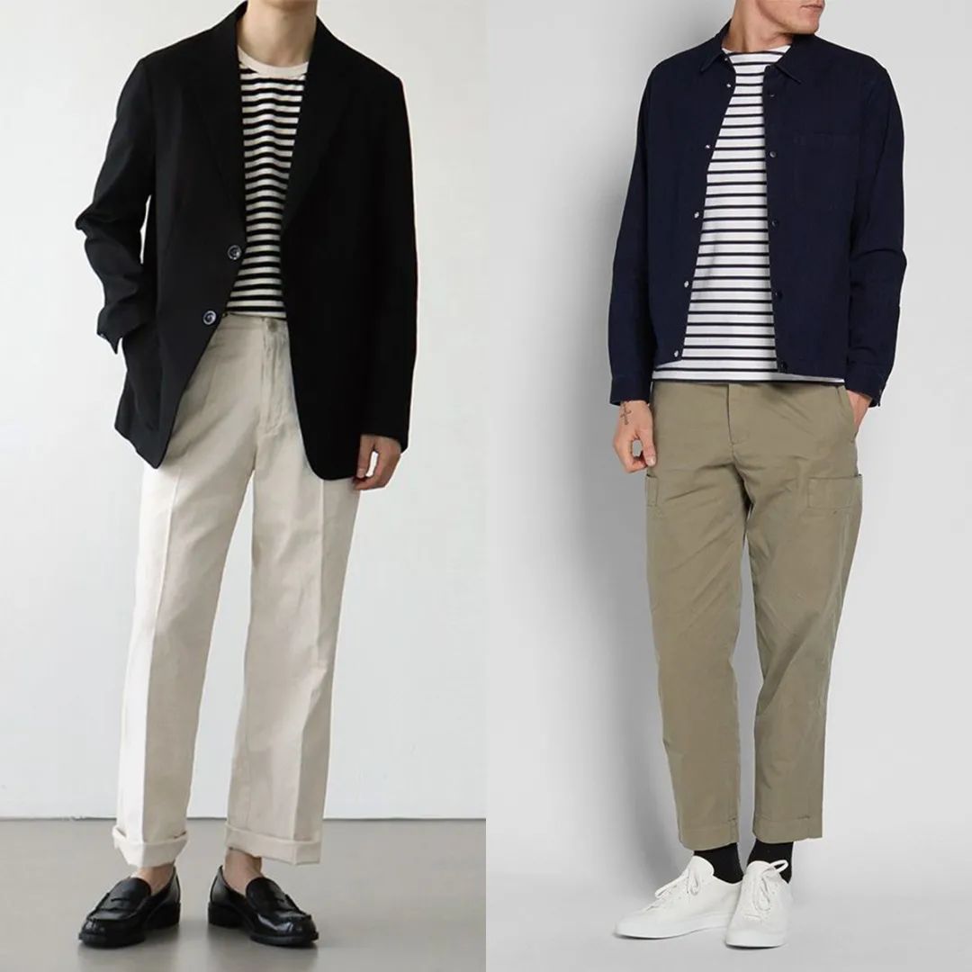 When matching, it depends more on your own needs. After all, from elegant gentleman’s suit to uninhibited From denim jackets to retro literary work jackets, they can be perfectly combined with striped T-shirts.