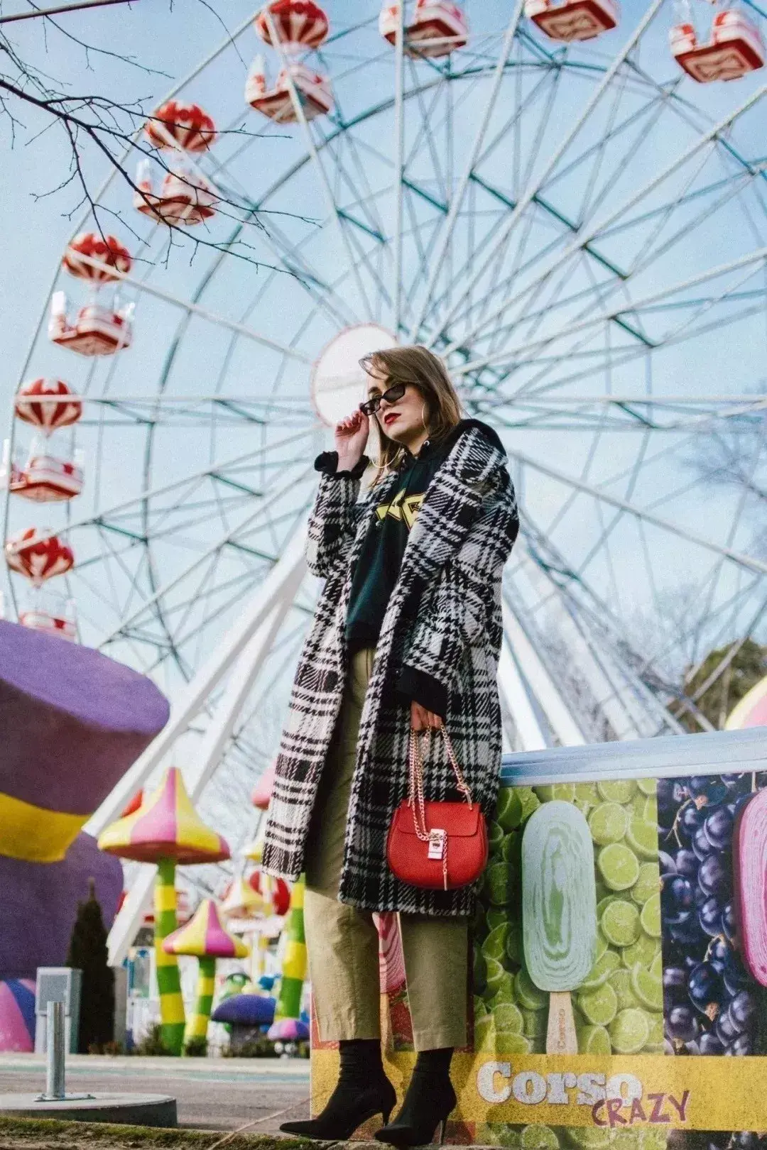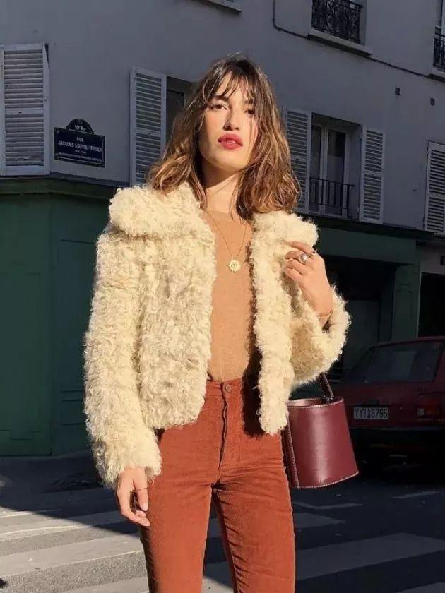 Because the lamb jacket occupies most of the body, it is best to choose a dark color, which will look thinner and warmer, and the overall casual feel will be more chic.
