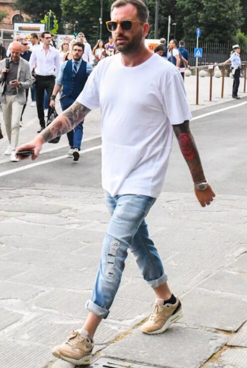 It is best to avoid colorful colors For patterns, try to pursue clean and concise colors. In addition, it is true that dark colors make people slimmer. In addition, tall and thin people can also try rolling up the cuffs to create a sense of structure. It can also increase the weight of the arms and make the overall look look stronger and more capable!
